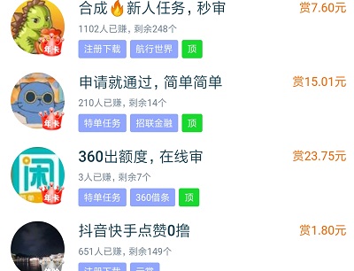 咱们下载安装好了之后登陆,在任务大厅就可以看到很多的悬赏任务,可以先点开任务,了解一下任务流程,看看自己是否能够完成这个任务,觉得自己可以完成了再领取任务,这样就可以更高效的做任务赚钱了。接单之后就必须严格的按照任务流程来操作了,随便做几个任务一天的零花钱就到手了。提交任务之后审核通过就能拿到佣金奖励。
