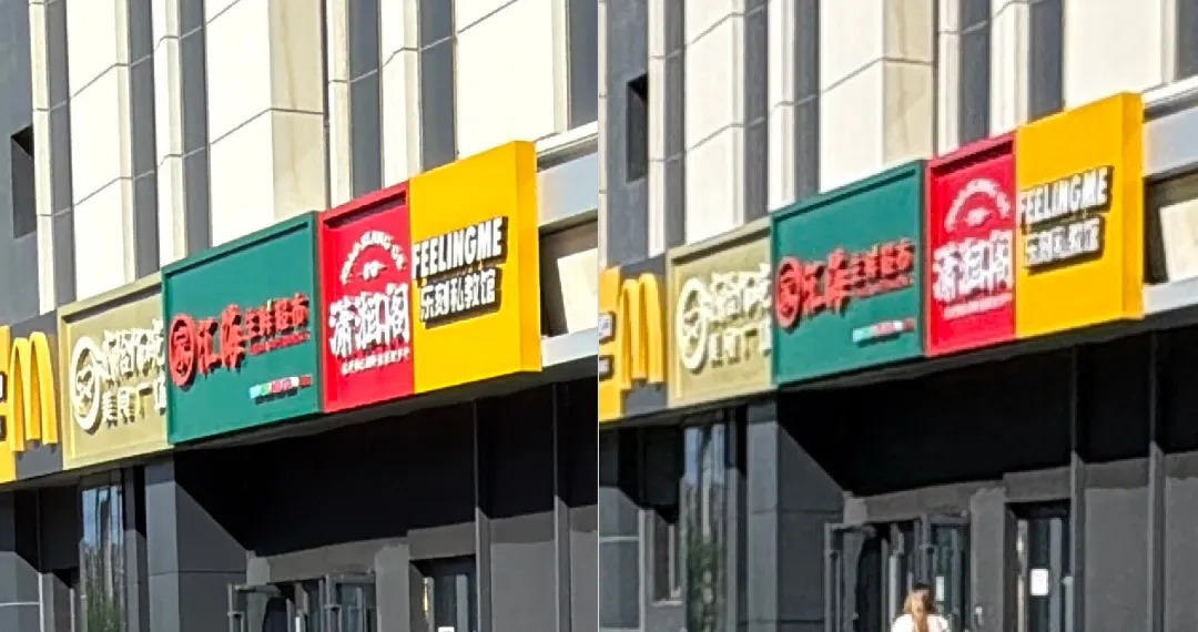 下图为iPhone 17、iPhone 16两款手机用超广角镜头拍摄下来的照片对比,左边的文字明显比上代更清晰。