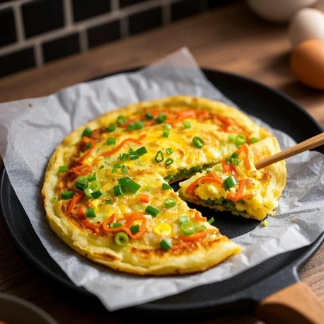 热腾腾的饼皮鼓得像个小气球,戳破的瞬间“呲啦”一声,金黄的蛋液顺着缝隙灌进去,香气扑鼻。咬一口,酥脆的外皮裹着嫩滑的鸡蛋,再卷上生菜、火腿和辣酱,简直是打工人早上的续命神器。