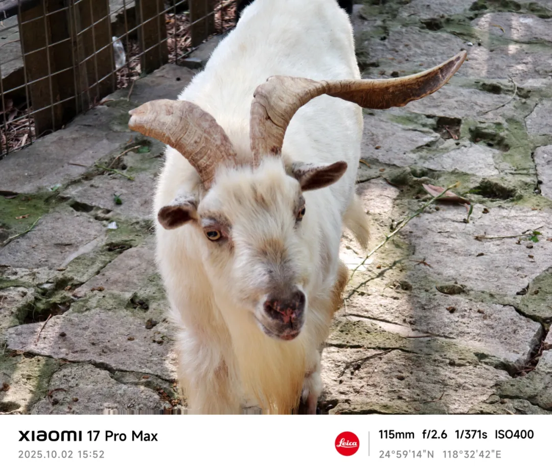 当镜头切到5倍变焦时,惊喜出现了。站在几米开外的位置,手机可以直接把一只山羊的细节定格下来:毛发纹理、羊角的曲线、表情的神态都清晰可见。那种仿佛拉近了人与动物距离的体验,让人忍不住想要多拍几张。
