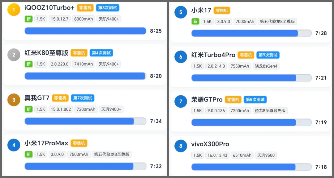 接下来,我们就结合知名测评机构@新评科技提供的排行榜,聊一聊续航表现最强的八款直屏。