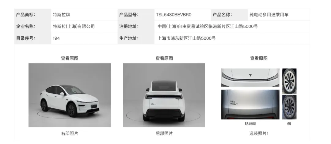 在工信部发布的第 400 批《道路机动车辆生产企业及产品公告》新产品公示文件中,又出现了特斯拉的新车。