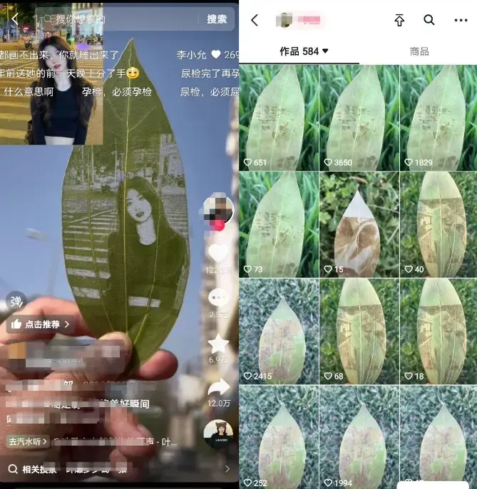 他把叶雕的成品和原图放在一起,搭配音乐剪辑成短视频,每天坚持发几条。