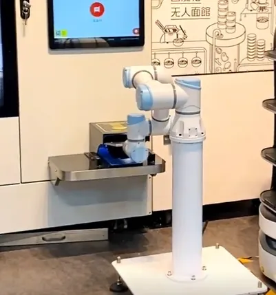 无人面馆全智能化的面条机,分送面、烧水、和面、压片、切割、下锅、煮面、倒料包、出锅装碗、端碗送出等10多个操控步骤,这些步骤由特制的辅助设备包括机械臂等完成。